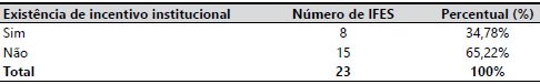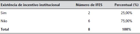 3.7 Existência de algum tipo de incentivo institucional para o docente que participa da formação continuada nas IFES