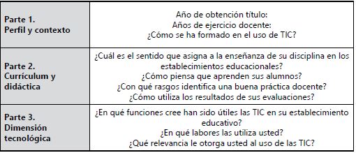 En este contexto, resulta necesario conocer las percepciones de profesores en torno al uso educativo de las TIC: ¿cuáles son las competencias que creen poseer?; ¿cuán relacionadas están con el marco regulatorio ministerial?