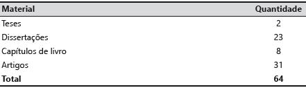 A pesquisa da qual trata o presente artigo, classifica-se como uma revisão de literatura, cujo objetivo é sintetizar as conclusões de um conjunto de pesquisas sobre uma temática específica. A pesquisa envolveu a consulta no Banco de Teses e Dissertações da Coordenação de Aperfeiçoamento de Pessoal de Nível Superior (Capes), na Plataforma Sucupira, no Portal de Periódicos da Capes, na Scientific Electronic Library Online (SciELO) e em sites de eventos científicos. Os descritores utilizados foram: “Pacto Nacional pela Alfabetização na Idade Certa”, “PNAIC”, “alfabetização na idade certa” e “formação de professores alfabetizadores”. Foram catalogados 144 textos, publicados no período de 2013 a 2016. Desse total, 64 foram classificados como textos oriundos de pesquisa de campo ou documental (Tabela 1), 23 como trabalhos publicados em anais de eventos científicos e 57 como relatos de experiência.
