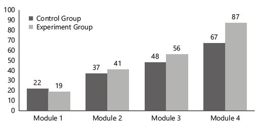Figure 2 presents the experiment results in average levels of development of professional competencies (in points) in the experimental and control groups.