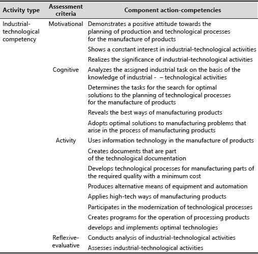 The reflexive-evaluative component includes the analysis and evaluation of one’s industrial-technological activities, the evaluation of the planned technological and industrial processes of manufacturing products in terms of cost, increase in labor productivity, and the use of modern high-tech equipment.