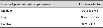 The following three levels of development of the bachelors’ professional competencies were accepted: medium, high, and creative (Table 2).