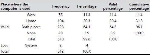 One of the questions of the questionnaire was aimed to gather information about whether the parents of these children use a computer and, more specifically, where.