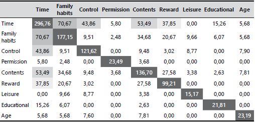 Once the results to answer the first four questions were described, the next step is to present the answers obtained for the fifth and last question. The items for this correspond to the RULES that govern the use of technology (Obj.5). As with the categories of USE, relationships were established among the different categories to verify their significance and attempt to explain where those RULES are targeted. All the parents, in some way, mentioned the rules they have at home for the use of technology. After synthesizing this information, it was observed, as shown in Table 5 , that parents have rules strongly related to the Family habits and, depending on these, they relate to Time, Contents, Control and Reward. As in the previous case, the data collected in Table 5 refer to the number of comments that have been categorized into two of the categories that appear.