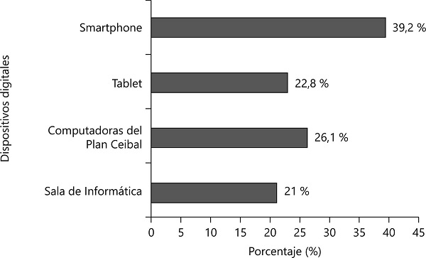 Fuente: Elaboración propia (2019)* La frecuencia de uso se expresa en porcentaje de respuestas positivas sobre cada dispositivo