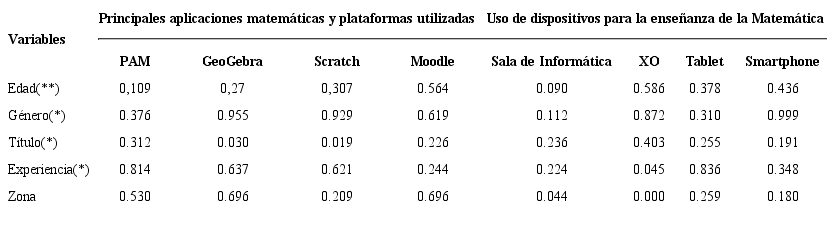Si bien la edad no es un factor que incida en el uso de las tecnologías por parte de los profesores de Matemática participantes del estudio, se halló que otros factores contextuales como el hecho de disponer de un título de pedagogía para el nivel donde se desempeñan o la experiencia profesional como profesores de secundaria son elementos que contribuyen a aumentar la efectividad en el uso de TIC en Educación Básica.