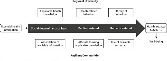 Health system resilience is one of the focuses in the low-income region framework and it is an indispensable university strategy for managing the health risks of older adults, and chronic disease patients. COVID-19 can cause disruption in health systems. Further, it has conspicuous effects on socio-economic development, particularly in low-income countries (HOPMAN; ALLEGRANZI; MEHTAR, 2020). Infrastructure development and service delivery is a critical public policy and investment area in many developing low-income regions. The influence of community factors on health by various factors such the socioeconomic characteristics, preparedness, and access to resources ( Figure 1).