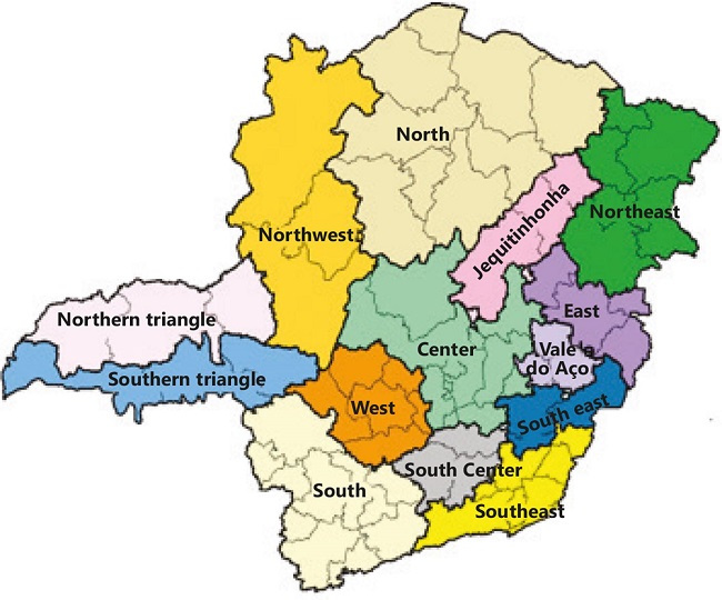 According to the Regionalization Master Plan (PDR) - Unique Health System (SUS – Sistema Único de Saúde), the Jequitinhonha Valley is one of the 14 health macro-regions in the state of Minas Gerais. In particular, this territory represents 14% of the state, and two-thirds live in the countryside. The micro-region of health constitutes the territorial basis for planning secondary health care and must have the capacity to offer outpatient and hospital services ( Figure 3).