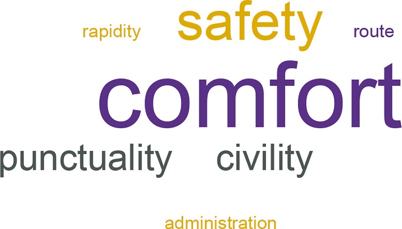 In the quantitative analysis, all criteria received positive evaluations, being safety the lowest when compared with regularity / punctuality, time, route, and comfort. In the qualitative analysis, these same variables were presented as positive, as follows: comfort, safety, punctuality, agility, and itinerary. Despite this, some students complain about overcrowding, lack of comfort, insecurity, long itineraries, inadequately maintained roads and slowness. These results corroborate the findings of studies by Carvalho et al. (2010) about overcrowding, by Cruz et al . (2010) and Sakellariou et al . (2017), who highlight safety as a negative point; from Pinheiro (2013) who shows dissatisfaction with comfort; and Santos (2010) who points out that students are subjected to irregular and delayed transport services. As recommendations common to Bucheanu’s research (2018), they suggest increasing safety and comfort to passengers in addition to reducing travel times. It is essential to improve planning and management of transport services (CARVALHO et al. , 2010; CRUZ et al. , 2010; PINHEIRO, 2013 ).