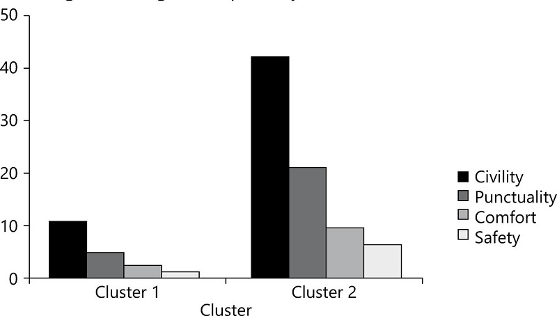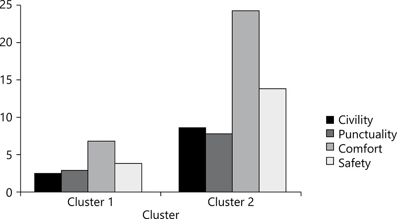 Finally, the results of the cluster analysis demonstrate the importance of differentiating the profiles of the most dissatisfied students and justify the need to better focus policies alleviate the problems revealed. In this way, it is possible to prioritize the groups most negatively affected, as the students, mainly of elementary classes that use compact vehicles and make longer journeys.