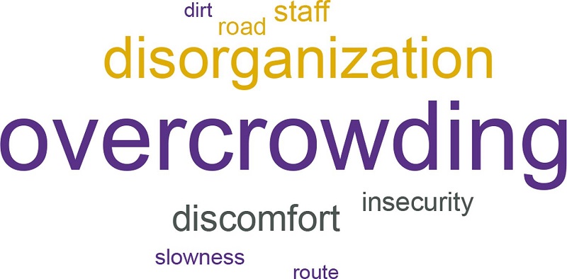 Among the negative aspects, overcrowding was presented as the key problem, while disorganization and discomfort came next. Several witnesses have reported children traveling standing on buses and students without using seat belts disobeying the Brazilian Traffic Code – CTB ( BRASIL, 1997 ). This happens due to lack of supervision by school and transportation authorities. Perhaps because of overcrowding, the interior of the vehicles seemed disorganized, leading many of them to feel uncomfortable. When comparing the main positive and negative aspects, a certain apparent contradiction is revealed, as overcrowding is, to some extent, incompatible with comfort.