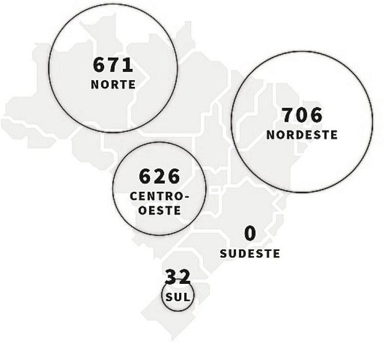 Os dados apontam que a região Nordeste apresenta 706 vagas, seguida pela região Norte com 671, Centro-Oeste com 626, Sul com 32, enquanto o Sudeste não tem nem uma vaga para cotas específicas para estudantes quilombolas.