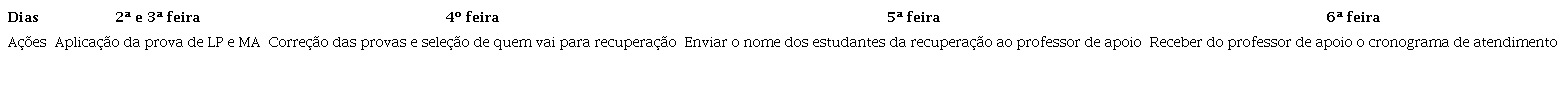 Em se tratando do período destinado à recuperação de aprendizagem, a orientação é a de que, ao final da semana de prova, o/a professor (a) da turma, de posse dos dados, preencha um documento contendo as habilidades, de acordo com a Base Nacional Comum Curricular, que deverão ser trabalhadas e os alunos que apresentaram nível insuficiente6 de aprendizagem nas provas de Língua Portuguesa e Matemática, os quais serão atendidos pelo (a) professor (a) da Sala de Apoio7 (Quadro 2). E orientam, ademais, [...] que na sala referência também haverá um momento destinado à recuperação com todos os estudantes (Cuiabá, 2023b, s/p). E, ao final deste processo, “[...] todos os estudantes deverão fazer a prova tratando somente das habilidades trabalhadas no período” (Cuiabá, 2023b, s/p).