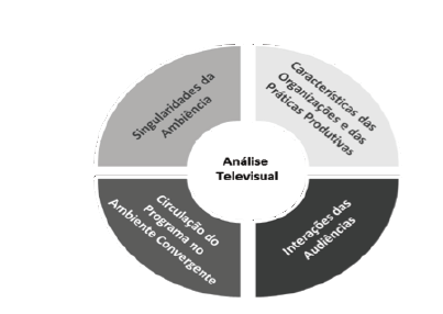 Contudo, nos estudos dos modos de produção televisivos, a ênfase das pesquisas sobre circulação recai sobretudo na distribuição e disseminação de conteúdos audiovisuais para entender as atuais transformações da experiência de consumo de imagens em movimento, decorrentes da portabilidade e da variabilidade de formas de acesso a essas materialidades, e os valores que lhes são atribuídos pelas culturas profissionais, uma vez que a indústria televisiva e suas produções carregam traços de determinadas organizações e de suas práticas produtivas. Esses estudos combinam análises de práticas culturais com uma abordagem política e econômica das mídias (MENOTTI; CRISP, 2015; MAYER; BANKS; CALDWELL, 2009). É possível inferir que a análise do texto audiovisual sintonizada nas interações das audiências, nas formas de circulação dos conteúdos audiovisuais, nas características da ambiência e nos modos como suas significações também são conformadas nas organizações e práticas produtivas, permite apreender de maneiras mais amplas os atuais processos comunicativos. O esquema analítico da Análise Televisual Convergente auxilia a observação dos regimes de visibilidade do texto e das lógicas de produção, circulação e consumo em um contexto específico. O Gráfico 1, apresentado na próxima seção, oferece uma visualização dessa proposição metodológica, considerando-se a Análise Televisual (BECKER, 2012; 2016) como uma das cinco etapas desse procedimento.