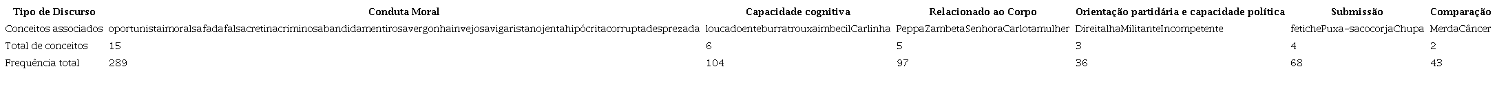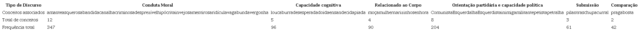 Com relação aos discursos que buscam desqualificar as deputadas, identificamos os seguintes conceitos associados: