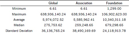 The Table 2 shows the descriptive statistics about the size of the associations and the private foundations analyzed, measured through the total assets of the organizations.