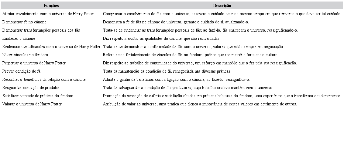 Potterheads chamam de poser o falso fã, a pessoa que posa de fã para obter benefícios próprios da condição do fã, mas que não domina os saberes do cânone e, portanto, falha em praticar ações do culto; essa é uma condição indispensável para o verdadeiro fã. No exemplo, a pessoa buscou legitimar sua condição de fã utilizando seus exercícios essenciais do culto ao cânone: ela cita a leitura completa dos livros, a participação nas estreias, o contato cotidiano com a obra, a coleção, o amor, o orgulho, o tempo de ligação e ainda a existência de um mentor que lhe capacitou para adentrar nessa cultura. Desse modo, Potterheads colecionam itens relacionados à saga, Potterheads dedicam empenho às práticas do fandom, Potterheads se orgulham da condição de fã, Potterheads são afetuosos com o cânone, Potterheads cultuam o cânone para Atestar envolvimento com o universo de Harry Potter. A função de: colecionar, dedicar empenho e se orgulhar é também valorar o universo de Harry Potter. Por sua vez, a atuação persuasiva de um educador o inseriu na ordem do dispositivo, pois Potterheads educam os novos fãs e também Potterheads estabelecem vínculos no fandom para Prover condição de fã.
