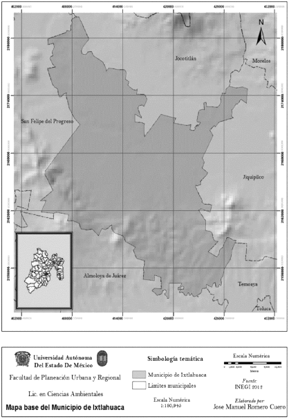 En la presente investigación se definió como zona de estudio al municipio de Ixtlahuaca durante el periodo de 2010 a 2012, realizando trabajo de campo en las localidades más representativas del municipio, así como analizando las características sociales, económicas y políticas que influyen en la Gestión Integral de Residuos Sólidos Urbanos.