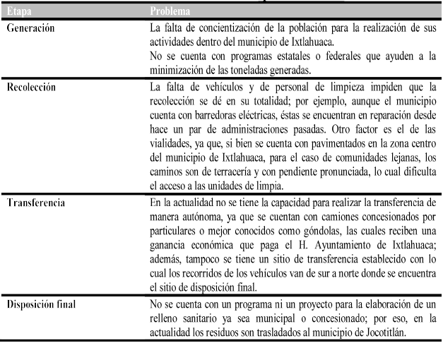 Problema de los Residuos Sólidos Urbanos (RSU) por cada etapa de la gestión en Ixtlahuaca