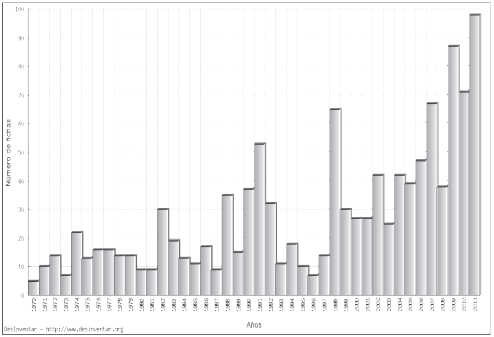 Así, la urbanización ha provocado el desequilibrio y la vulnerabilidad de los ecosistemas debido a la sobrecarga en el territorio. En la primera década de este siglo, los reportes en cuanto a los desastres por inundación en la ZMCM, según la base de datos de Desinventar, han tenido un aumento considerable (véase gráfica 1). La vulnerabilidad y el riesgo en cada espacio que compone la ciudad adquieren características propias. Las relaciones de poder entre los actores estatales (gobierno local) y no estatales (empresarios) actuarán como un factor adicional sobre la producción social del espacio urbano, la construcción de la vulnerabilidad socioambiental que, junto a las amenazas naturales, posibilita el riesgo y el desastre.