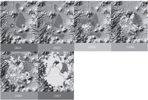 De esta forma, la actividad industrial e inmobiliaria son procesos paralelos que se desarrollaron de una forma vertiginosa en este municipio. Se unen por tanto tres fenómenos clave en este territorio, a saber: el acelerado aumento de la población,17 el crecimiento industrial18 y la expansión vertiginosa de los asentamientos humanos. Factores inmersos en el desarrollo de una economía de servicios acorde al contexto de las ciudades globalizadas.19