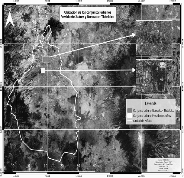 Los conjuntos urbanos, objetos de este estudio, Presidente Juárez y Nonoalco- Tlatelolco (mapa 1), son muestra del proceso de modernización metropolitana de mediados del siglo XX frente a una ciudad con “crecimiento incontrolable”, donde las colonias irregulares y de autoconstrucción han dominado amplias zonas (De Garay, 2004: 77). Inicialmente, se manejó el esquema de vivienda social de alquiler; es decir, el gobierno rentaba los departamentos a los beneficiarios. Su diseño consiste en bloques de edificios de geometría simple, de diferentes alturas, en paisajes ajardinados. Se pretendía economizar el costo de los servicios al realizarse en común, así como estimular la vida en comunidad (Rodríguez, 2013). Sin embargo, al principio hubo cierto rechazo porque era un esquema desconocido en la Ciudad de México, donde la vivienda unifamiliar tenía fuerte arraigo cultural y no era común la propiedad en condominio (Esquivel, 2008).