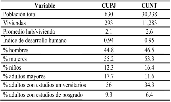 Algunos datos actuales relevantes de los conjuntos urbanos se pueden ver en el cuadro 1. Destaca el Índice de Desarrollo Social en ambos, que es más alto al de la Delegación Cuauhtémoc, así como la alta proporción de población con estudios de licenciatura y posgrado. En el caso del CUNT, también sobresale cómo ha descendido el promedio de habitantes por departamento, mientras en el CUPJ ha sido más estable en ese sentido.