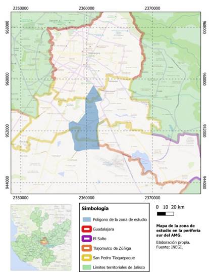 A partir de 1940 el crecimiento de la ciudad de Guadalajara (GDL) se dio exponencialmente hacia el sureste de dicho municipio (García y Núñez, 2017). Fue en 1960 cuando la metrópoli tapatía se organizó a través de dos circuitos urbanos: el primero agregó los municipios de San Pedro Tlaquepaque (TLQ) y Zapopan; en 1980 se sumó Tonalá. En el segundo, con el aumento demográfico, en 2005 se anexaron los municipios de El Salto, Tlajomulco de Zúñiga (TJZ), Juanacatlán e Ixtlahuacán de los Membrillos. Por último, en 2014 se agrega el municipio de Zapotlanejo (García y Núñez, 2017).