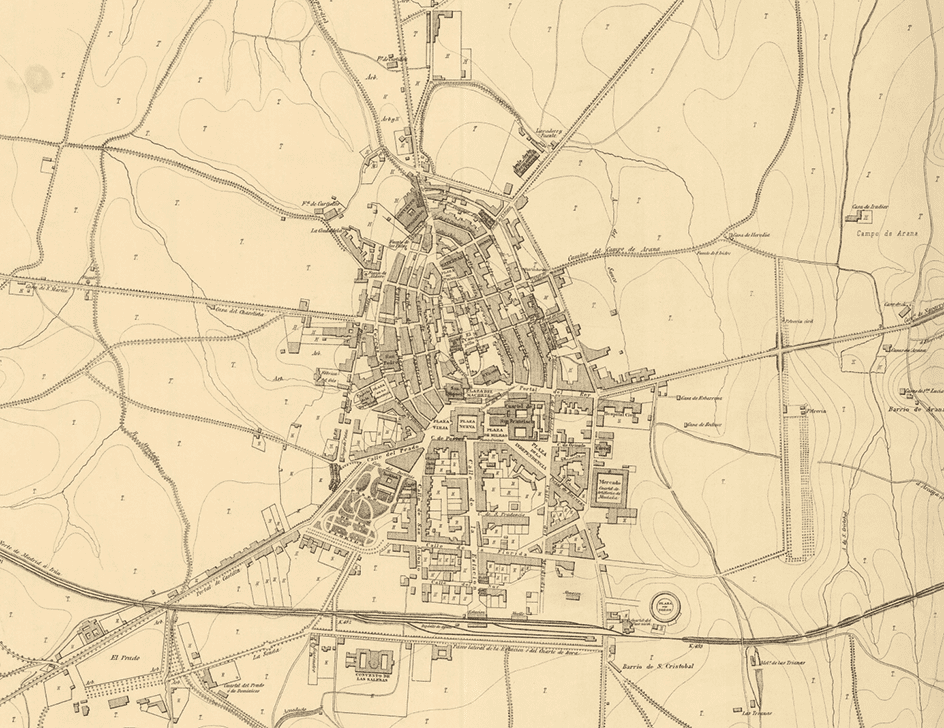 En 1862 pasó por primera vez un tren por Vitoria que formó, y forma, parte de la importante línea ferroviaria Madrid-Irún, concluida en 1864. A pesar de que el ferrocarril Bilbao-Tudela, construido en la misma época por otra empresa, no se trazó finalmente por Vitoria debido a rivalidades político-económicas (Rivera, 2008), la llegada del ferrocarril Madrid-Irún o “Ferrocarril del Norte” supuso, como en otras muchas ciudades de Europa, una revolución urbana.