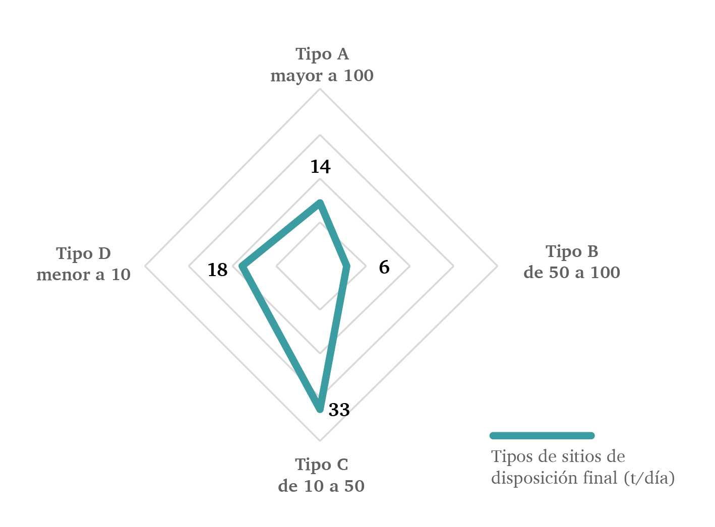 Con base en el tipo de infraestructura, tan solo 19 sdf tienen una disposición adecuada de los residuos, mientras que los 52 restantes vierten de manera inadecuada los rsu.