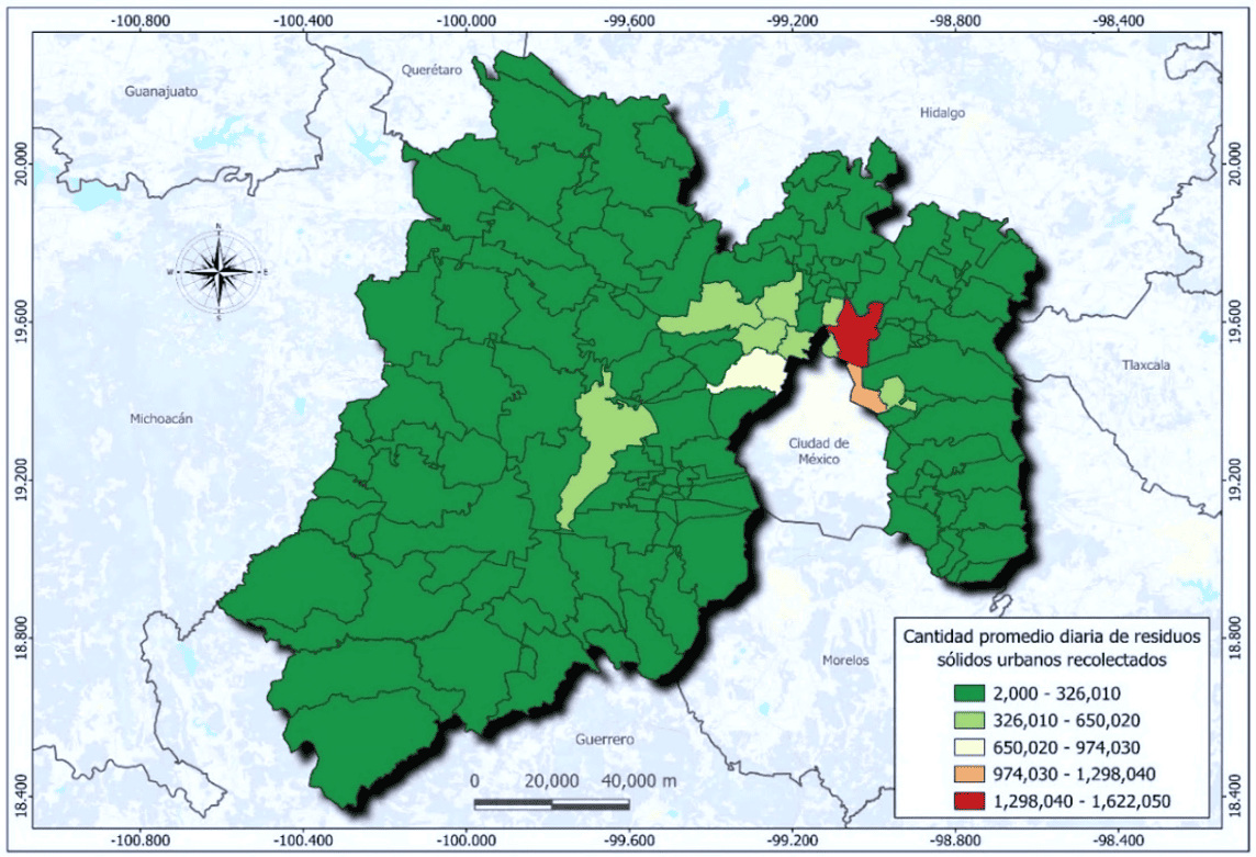 El Estado de México es el más poblado a nivel nacional, lo que convierte la gestión de los rsu en un desafío particularmente grande, debido a su alta densidad poblacional. Esta contribuye significativamente a la generación de residuos y subraya la importancia de una gestión eficiente y sostenible. Resalta la necesidad de ajustar y mejorar los sistemas de gestión de residuos para responder a la creciente demanda.