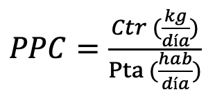 Su objetivo es determinar los recursos necesarios, como maquinaria, equipo y personal, para satisfacer la infraestructura requerida en el proceso de gestión de residuos. En esta sección se considera el indicador de la generación per cápita (GPC) que representa la cantidad diaria de rsu producidos por cada persona. Se calcula tomando el promedio de la generación de residuos por habitante, expresado en kilogramos por habitante al día (ecuación 1). El cálculo de la GPC ayuda a evaluar el riesgo potencial asociado con una gestión inadecuada de los residuos (Semarnat, 2016). Además, también puede ser estimada por métodos indirectos mediante datos globales y sin discriminaciones cualitativas, como se observa en las ecuaciones 2 y 3, que establecen la proporción entre la cantidad total de residuos que se recogen y la población total atendida.
