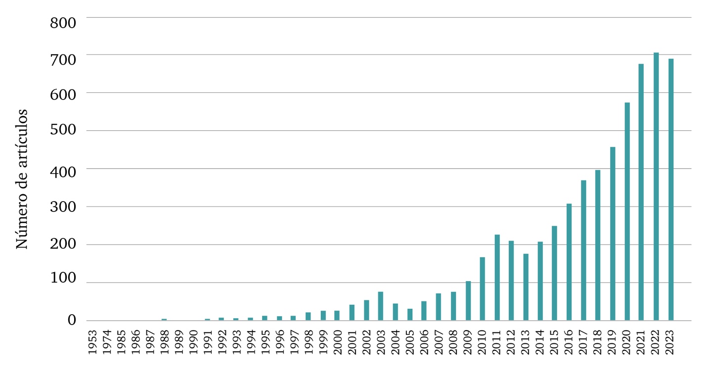 En la última década, la investigación en agroecología ha cobrado relevancia mundialmente. Por ejemplo, en la base de datos SCOPUS, el término agroecology aparece por primera vez en 1953, pero es a partir de la segunda década del presente siglo que se observa un incremento en las publicaciones científicas que hablan de este tema (6 110 trabajos hasta el 2023) (figura 1). Los países con mayor número de publicaciones son Estados Unidos (1 139) y Francia (903), seguidos de Brasil (553) y China (504). México se ubica en el treceavo lugar con 226 trabajos.