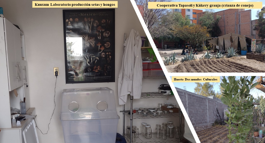 Crean estrategias eligiendo productos como setas y hongos que requieren otros medios de cultivo que no son suelos, por ejemplo, el Laboratorio Kuuxum. Una de las barreras para tener un terreno son los altos precios que éstos tienen en la ciudad, también en el área periurbana, debido a los desarrollos inmobiliarios que han encarecido la tierra en esa zona.