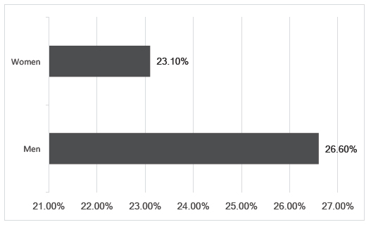 The purpose of this study was to assess the predictive power of experiences in the family of origin, maladaptive initial regimens, love, marital adjustment and family atmosphere for the occurrence of physical violence. The results revealed that physical violence was committed by 26.6% of male participants and 23.1% of women, as seen in the chart below: