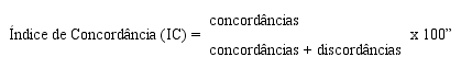 Oito assistentes, previamente treinados, compuseram a equipe desta pesquisa. A coleta de dados foi realizada em duas etapas, a primeira com os participantes do grupo com plateia a segunda com os integrantes do grupo sem plateia. Em cada etapa, um assistente de pesquisa conduziu o TSFP e outro, a aplicação das demais escalas. O conteúdo das filmagens foi analisado pelos assistentes de pesquisa, visando o cálculo das frequências ou duração dos marcadores comportamentais de ansiedade e dos índices de concordância entre observadores, a partir da seguinte fórmula: