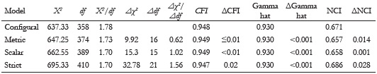 Damásio, B. F. (2013). Contribuições da análise fatorial confirmatória multigrupo (AFCMG) na avaliação de invariância de instrumentos psicométricos. Psico-USF, 18(2), 211-220. http://doi.org/10.1590/S1413-82712013000200005