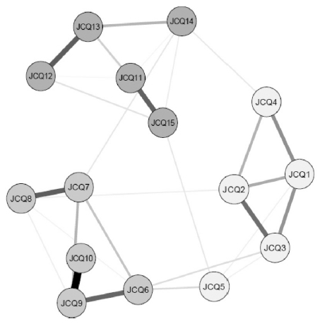 O posicionamento e força do item seis da EART permitiu entender a carga cruzada do item cinco na análise fatorial exploratória, o qual foi explicado tanto pela dimensão da tarefa (à qual ele pertence), como pela dimensão cognitiva. O item cinco “Dá preferência às tarefas de trabalho que se adequam às suas habilidades ou interesses” foi fortemente influenciado pelo item seis, o qual faz referência à percepção do indivíduo sobre o sentido e propósito do trabalho na vida. A posição do item seis como um nodo que espalha influência em todo o sistema poderia ser explicada como uma cognição saliente que estaria antecipando as demais ações de redesenho do trabalho. Portanto, apresentam-se evidências de que o redesenho do trabalho compreende um conjunto variado de ações que incluem não apenas mudanças tangíveis nas tarefas e nas relações, mas também mudanças na forma de perceber o trabalho, o que por sua vez pode influenciar novas ações de redesenho das tarefas e das relações.