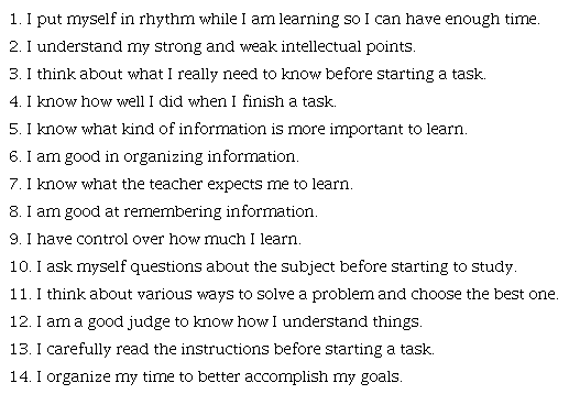 The first set of the research is the Metacognitive Awareness Inventory (MAI) that was developed by Schraw and Dennison and published in the 19th edition of Contemporary Educational Psychology in 1994. The aim of these studies was to develop a metacognitive inventory easy to apply to juveniles and adults.
