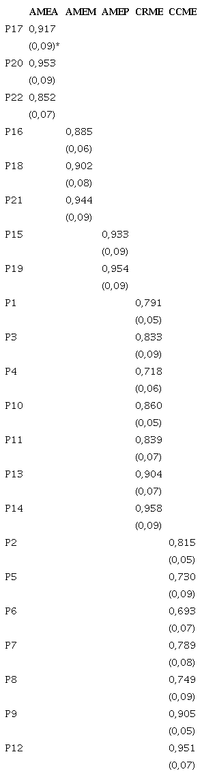 Factor CCME – measured by questions 2, 5, 6, 7, 8,9 e 12;