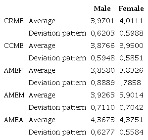 Parting from the results of table 6, it can be noted that concerning Metacognitive Awareness, the women presented higher averages in Awareness of the Knowledge of Metacognitive Abilities and Strategies (CCME), that involves the declarative knowledge, procedural and conditional, as in the Awareness of Metacognition Regulation Strategies (CRME), that involves the planning, information management, monitoring, depuration and evaluation characteristics. Concerning Metacognitive Activities, the men stand out in the Metacognitive Activity Monitoring (AMEM) construct, which is an activity that evaluates the decisions during problem solving and in Metacognitive Activity Planning (AMEP), which is an activity that analyses the measures taken before the problem solving. In turn, the women stand out in the Metacognitive Activity Valuation (AMEA) construct, which is an activity that involves actions taken after the problem solving. It can be concluded, therefore, that while men posses an increased focus on the stages before and during the decision making, the women are more focused on the results that these decisions generate.