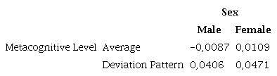 Before the average equality test, a preliminary exam on the factorial scores generated in the PLS-SEM assessment according to the sex and their metacognitive level was executed. the distribution of these scores according to the averages and deviation patterns are shown on Table 8.