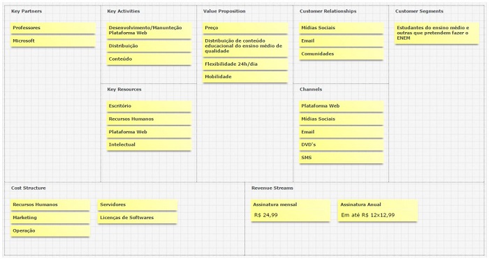 Como forma de adquirir um aporte financeiro para investir em sua ideia, Marco começou a elucubrar sobre modelos de negócio que pudessem atrair investidores. Depois de reflexões com mentores, Marco adotou o Business Model Canvas para apoiá-lo na formatação do seu plano de negócio da futura organização (Figura 2).