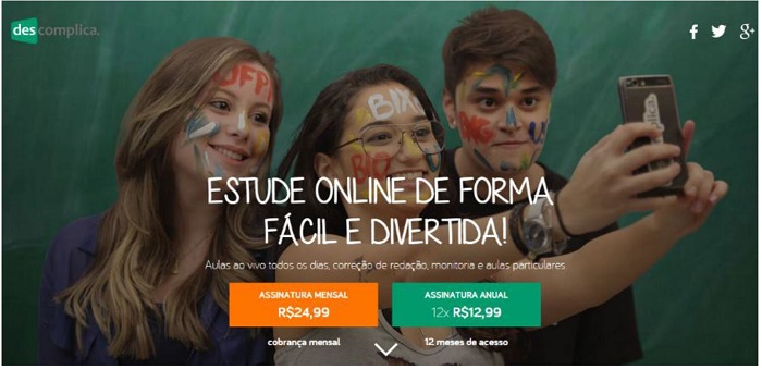 Por meio desse modelo de receita, a Descomplica apostou na flexibilidade do usuário de poder assistir aulas online em qualquer lugar e a qualquer hora através da internet, em que o usuário teria um conteúdo gratuito limitado do ensino médio e caso tivesse interesse em acessar todo o conteúdo e novas funcionalidades, poderia efetuar o pagamento online através de boleto bancário ou cartão de crédito por um preço bastante acessível em relação aos pré-vestibulares presenciais. A Figura 3 ilustra a página de assinatura da Descomplica.