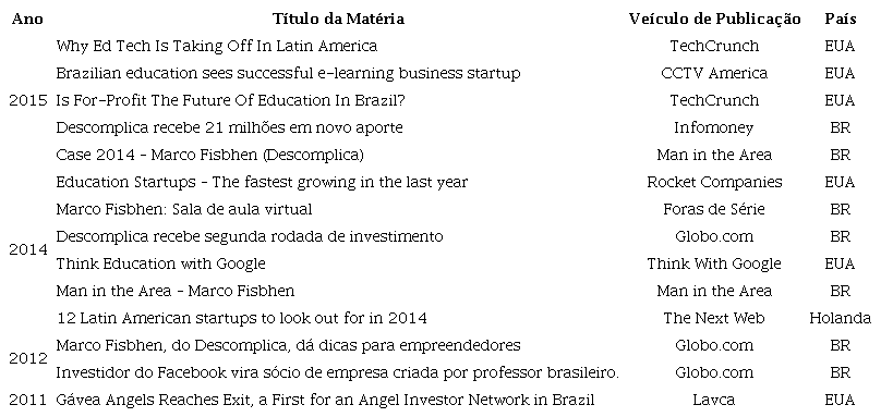 CGTN AMERICA. Brazilian education sees successful e-learning business startup. Disponível em: http://www.cctv-america.com/2015/09/30/brazilian-education-sees-successful-e-learning-business-startup. Acesso em: 15 set. 2015.