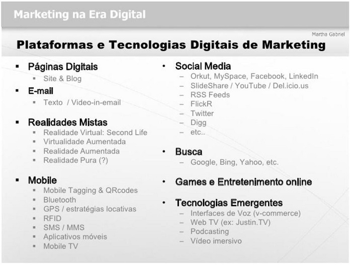 GABRIEL, M. Marketing na era digital: conceitos, plataformas e estratégias. São Paulo: Novatec, 2010.