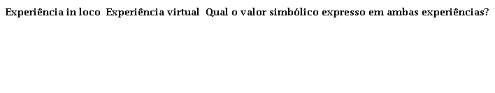 Para finalizar, proponha a construção de um quadro onde se identifique a estratégia virtual, a experiência física e a relação impressa do valor simbólico descrito nas duas propostas, bem como sua correlação. O Quadro 1 fornece um exemplo para estruturar a proposição: