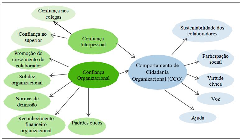 O impacto da confiança do indivíduo na organização sobre o CCO permite também algumas reflexões. Para Paillé, Bourdeau e Galois (2010), a confiança dos funcionários na organização consiste em um processo baseado na crença de que a outra parte respeitará seus compromissos, sendo crucial para o desenvolvimento e envolvimento com o trabalho. A confiança congrega aspectos associados à confiabilidade, honestidade, cordialidade, orientação e competência (SVENSSON, 2005), que ao serem percebidos pelos indivíduos, estimulam comportamentos favoráveis à organização. Para Hassan (2014) as organizações tendem a promover os CCO ao criarem um clima favorável de confiança entre os indivíduos e a empresa. Assim, níveis mais elevados de Confiança Organizacional impactam positivamente nos Comportamentos de Cidadania Organizacional (DUFFY; LILLY, 2013), como confirmado nos resultados obtidos no presente estudo.