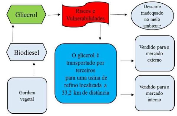 Outra questão é se os produtores de biodiesel têm ciência sobre o risco a que estão expostos o ambiente e a saúde das pessoas diante da grande quantidade de glicerol gerado, tornando-se um problema. Verifica-se que, em dois estados da região nordeste do país, já ocorreram lançamentos glicerol em cursos d’água (FAIRBANKS, 2009). Complementarmente, fato é que houve rejeição de proposta para formulação de políticas públicas para contribuírem junto às pequenas usinas produtoras.