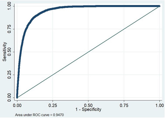The results indicate that the area under the ROC curve is 0.95, within the excellence parameter (0.8), indicating that the explanatory power of the model is good. Fávero and Belfiore (2017) point out that situations with these parameters have high overall efficiency and statistically significant explanatory variables to compose the expressions of occurrence probabilities of the event and not the event, which may indicate the need for inclusion of new explanatory variables in order to improve the character of predictability to predict the elect.